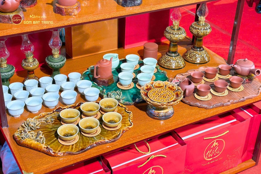 Ấm chén thủ công với men ngọc, men rạn, men lam… giữ nhiệt tốt, tôn hương vị trà, thích hợp làm quà biếu, quà tặng doanh nghiệp, quà Tết.
