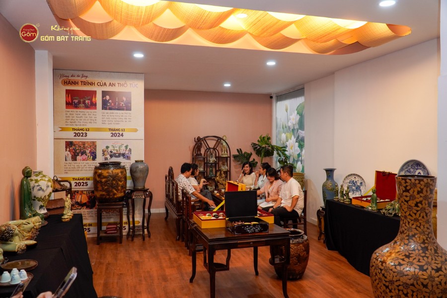 Đặc biệt, khách ghé thăm còn có thể ngồi lại dùng trà ngay tại không gian, trực tiếp trải nghiệm trà cụ An Thổ Túc trong một bầu không khí nhẹ nhàng, gần gũi, nơi mỗi chén trà không chỉ là hương vị mà còn là sự kết nối với đất, với gốm và với những giá trị truyền thống bền vững.